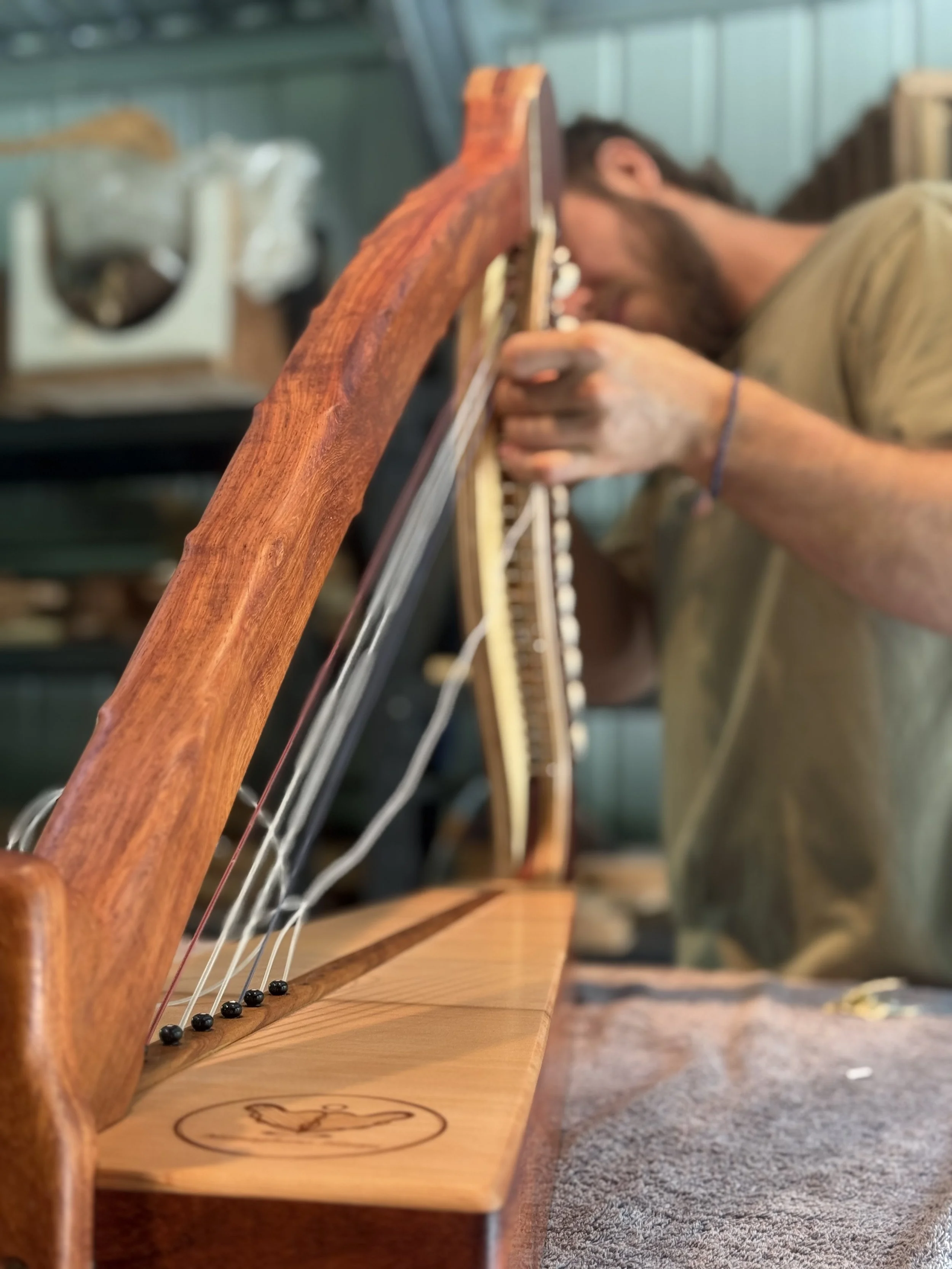 It is with this reverence that I approach the craft. Each harp is built by hand and shaped with patience, love, and intention.